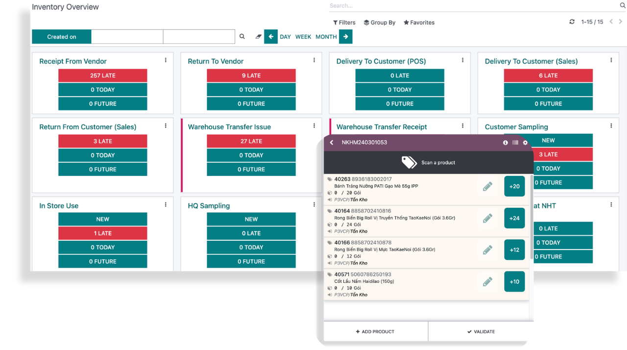 Đảm bảo vận hành kho hiệu quả, mượt mà. Số liệu kịp thời.