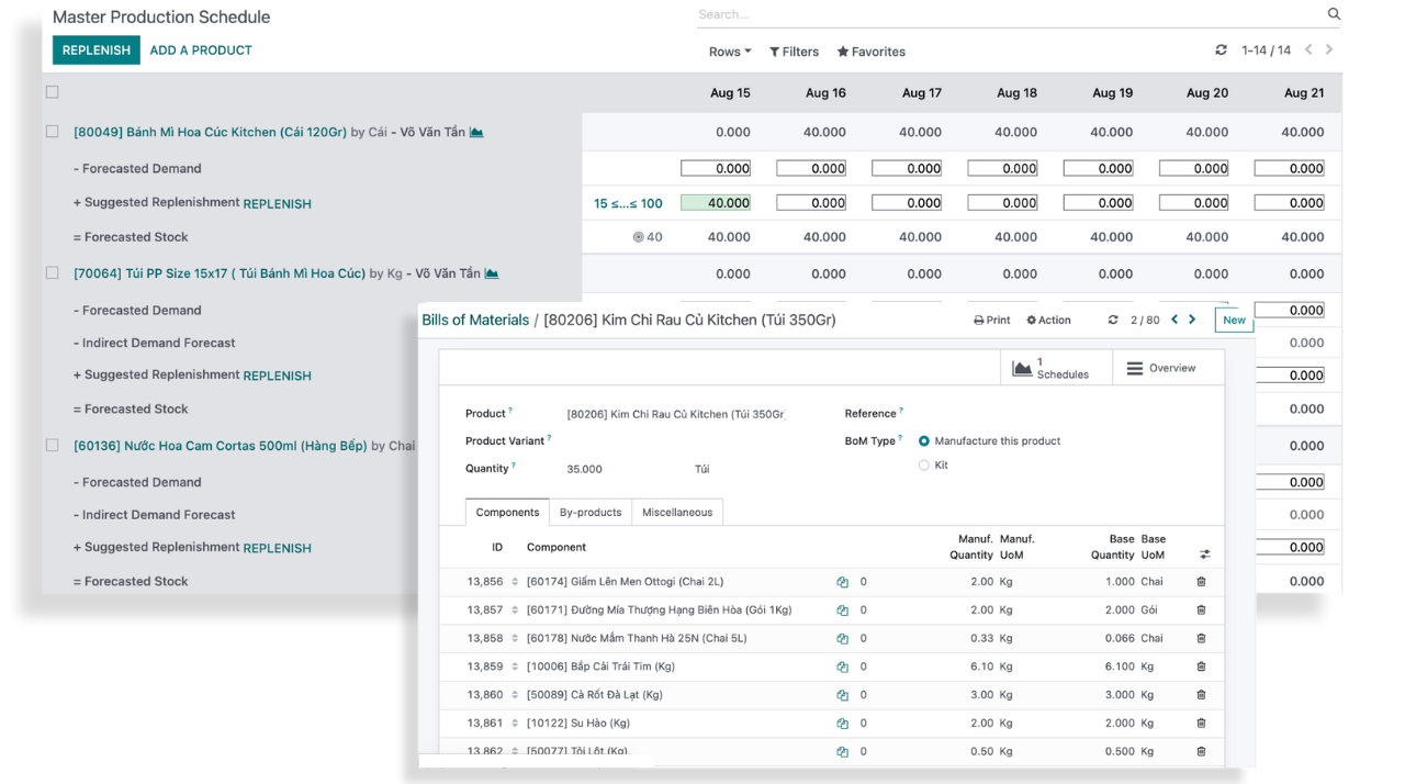 Kiểm soát nhu cầu thành phẩm, dự toán nhu cầu nguyên vật liệu.