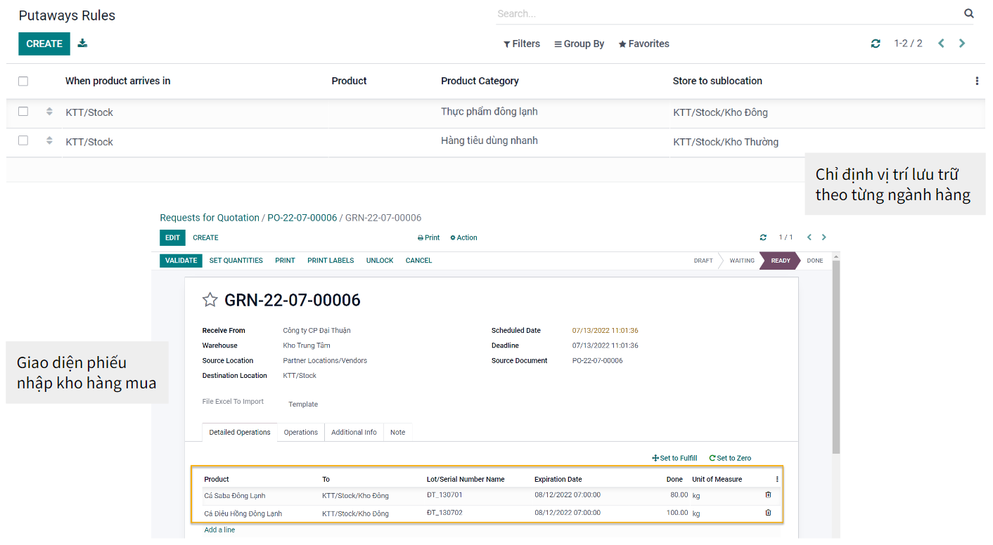 2. Khi nhập hàng thì hệ thống dựa theo quy tắc đã được cấu hình sẵn theo nhóm ngành hàng để nhập hàng vào đúng vị trí đó.