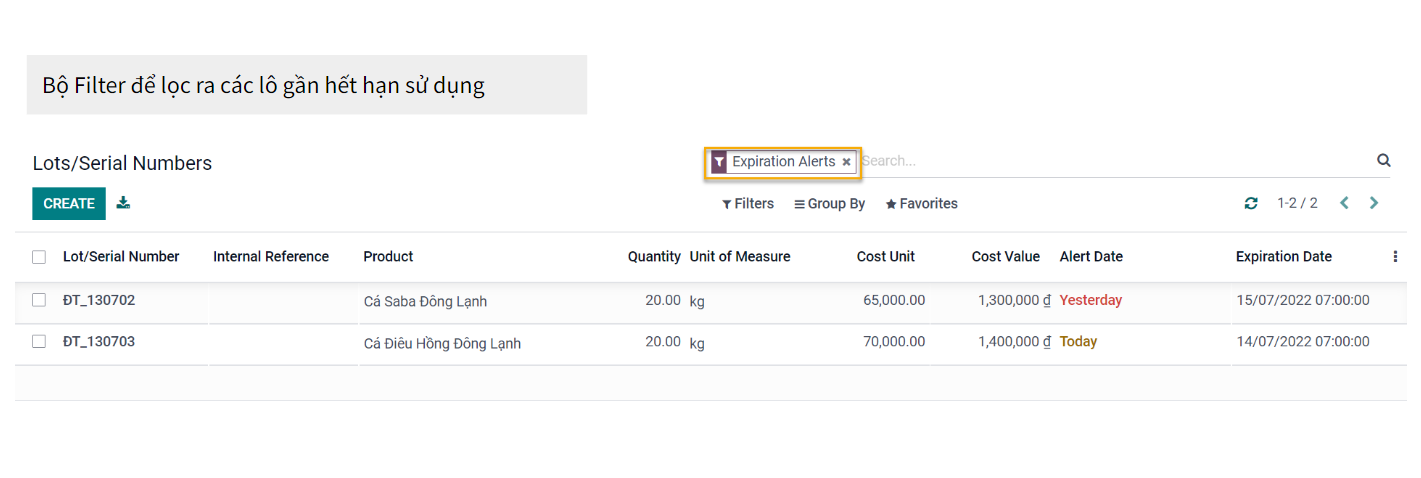 2. Các lô hàng gần hết hạn sử dụng thì hệ thống sẽ lọc ra và cảnh báo để có hướng xử lý cho phù hợp.
