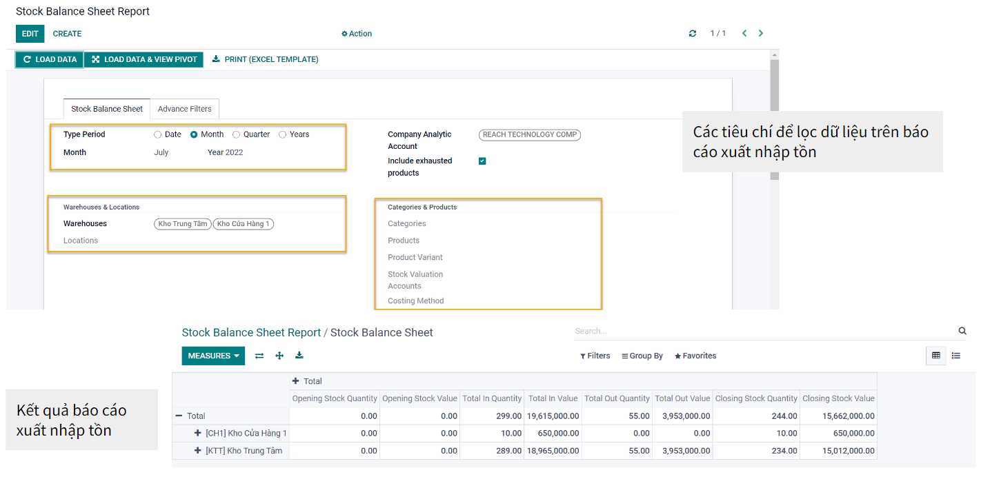 Báo cáo xuất nhập tồn kho có giá vốn