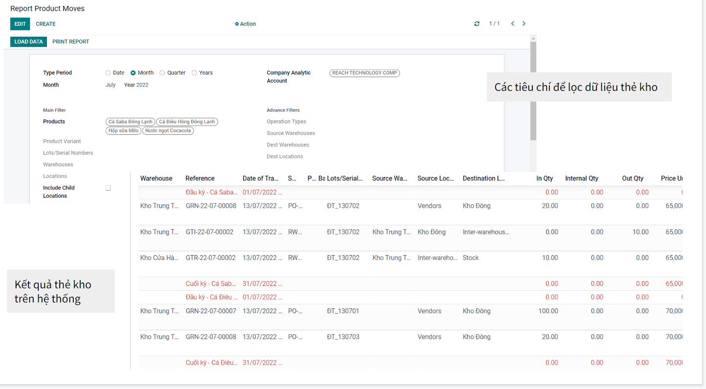 Báo cáo xuất nhập tồn chi tiết có giá vốn